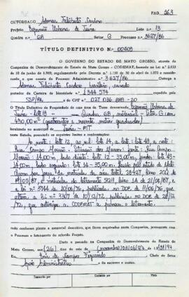 - ÓRGÃO DE TITULAÇÃO: INSTITUTO DE TERRAS DE MATO GROSSO
