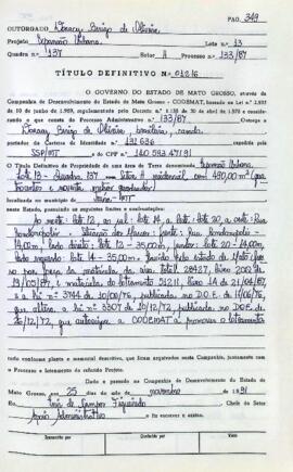- ÓRGÃO DE TITULAÇÃO: INSTITUTO DE TERRAS DE MATO GROSSO