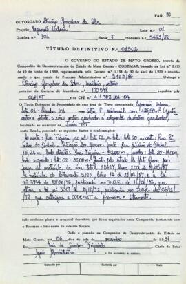 - ÓRGÃO DE TITULAÇÃO: INSTITUTO DE TERRAS DE MATO GROSSO