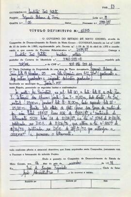 - ÓRGÃO DE TITULAÇÃO: INSTITUTO DE TERRAS DE MATO GROSSO